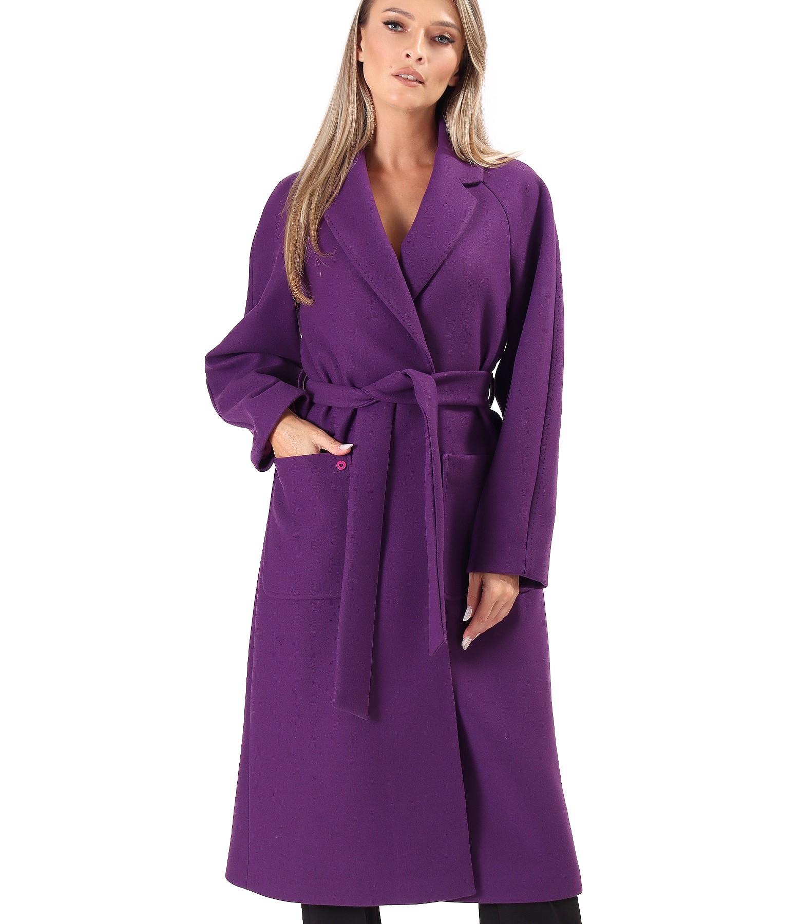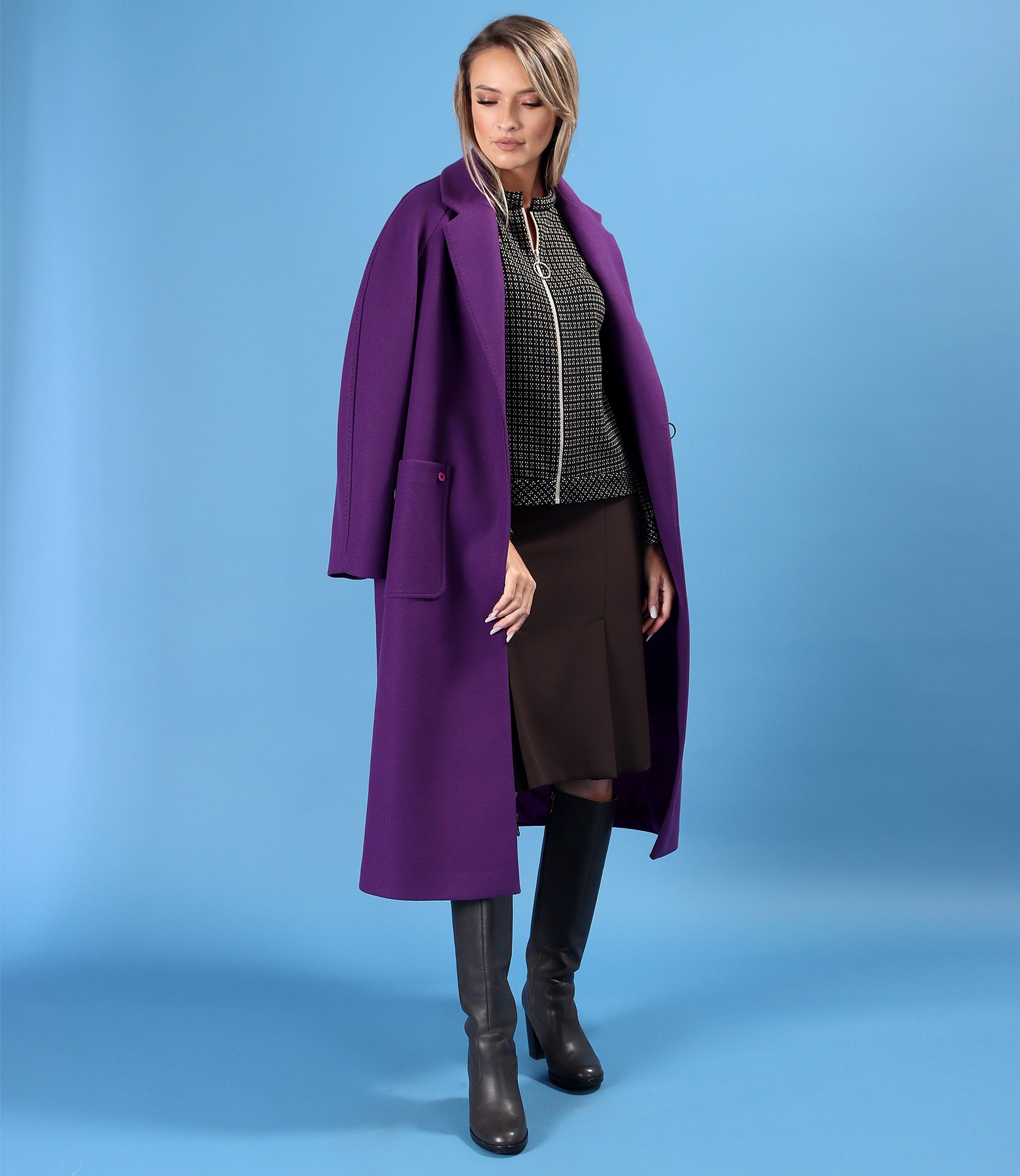 Pardesiu midi lejer din stofa groasa cu lana (Mov), marimea