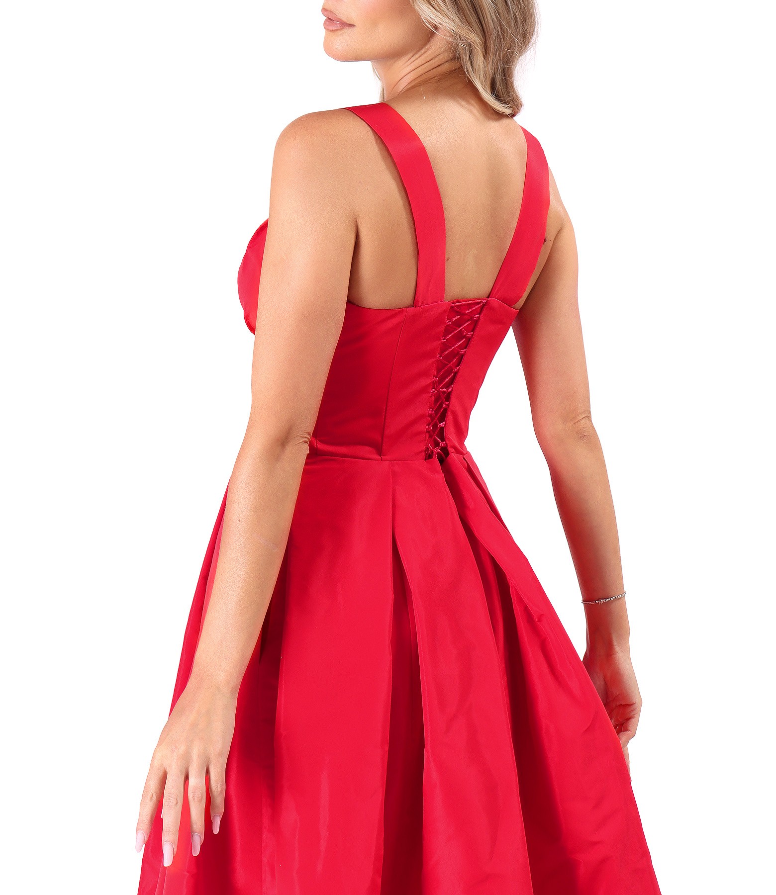 Rochie evazata din tafta cu corset cu bretele (Rosu), marimea