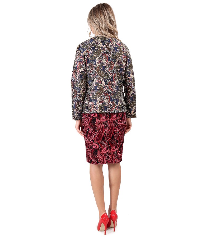 Tinuta eleganta cu jacheta din brocard cu rochie midi din catifea (), marimea