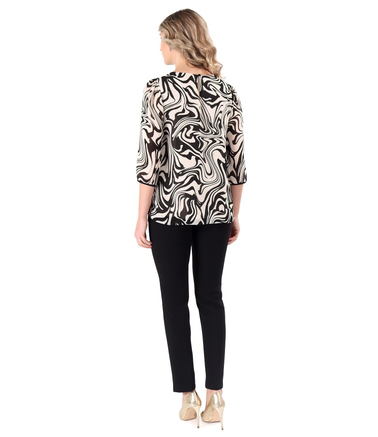 Bluza eleganta din viscoza imprimata cu motive geometrice, dublata cu viscoza, cu maneci 3/4 si decolteu rotund.